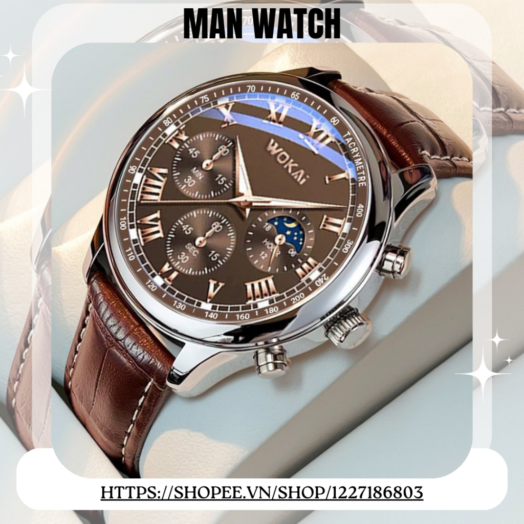 Đồng hồ đeo tay nam W06 dây da nâu mặt nâu lịch lãm sang trọng-SHop Phụ Kiện Số