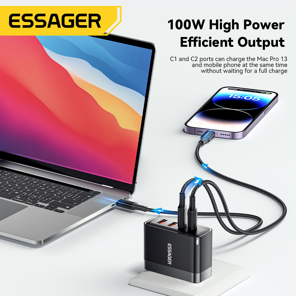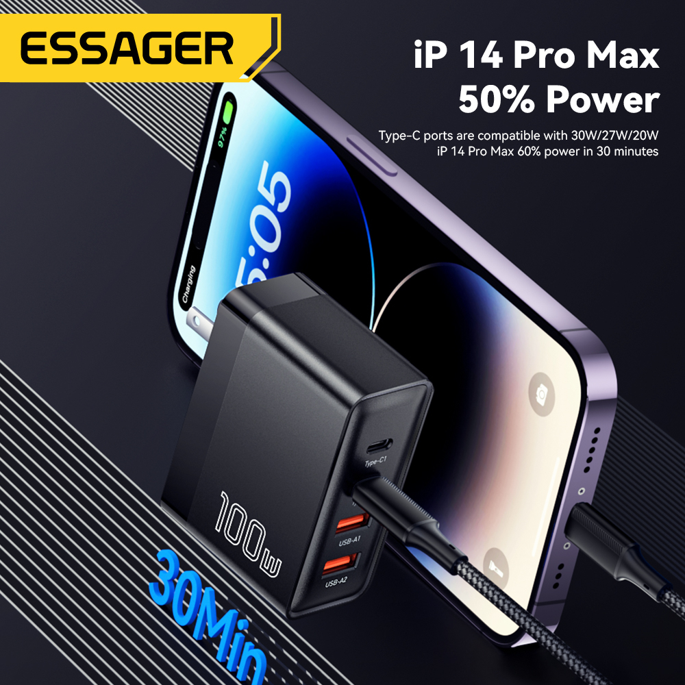 Essager Củ Sạc Nhanh Loại c gan 2c2a pd 100w Cho laptop Điện Thoại-SHop Phụ Kiện Số