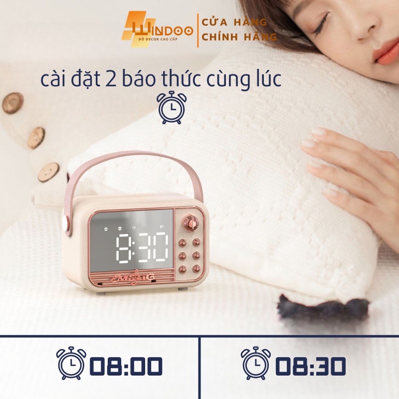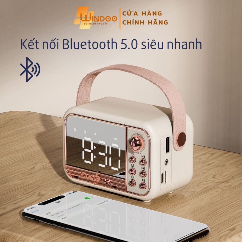 Loa bluetooth đồng hồ báo thức Windoo WD47 màn hình gương, loa bluetooth kết hợp đồng hồ đa chức năng-SHop Phụ Kiện Số