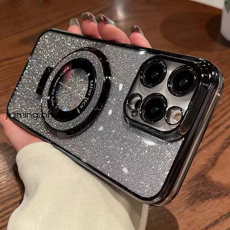 Ốp Điện Thoại Lấp Lánh Mạ Sang Trọng Tương Thích Cho iPhone 16 11 12 13 14 15 Pro Max SE 6 6S 7 8 Plus Ốp Lưng Có Giá Đỡ Vòng Từ Tính-SHop Phụ Kiện Số