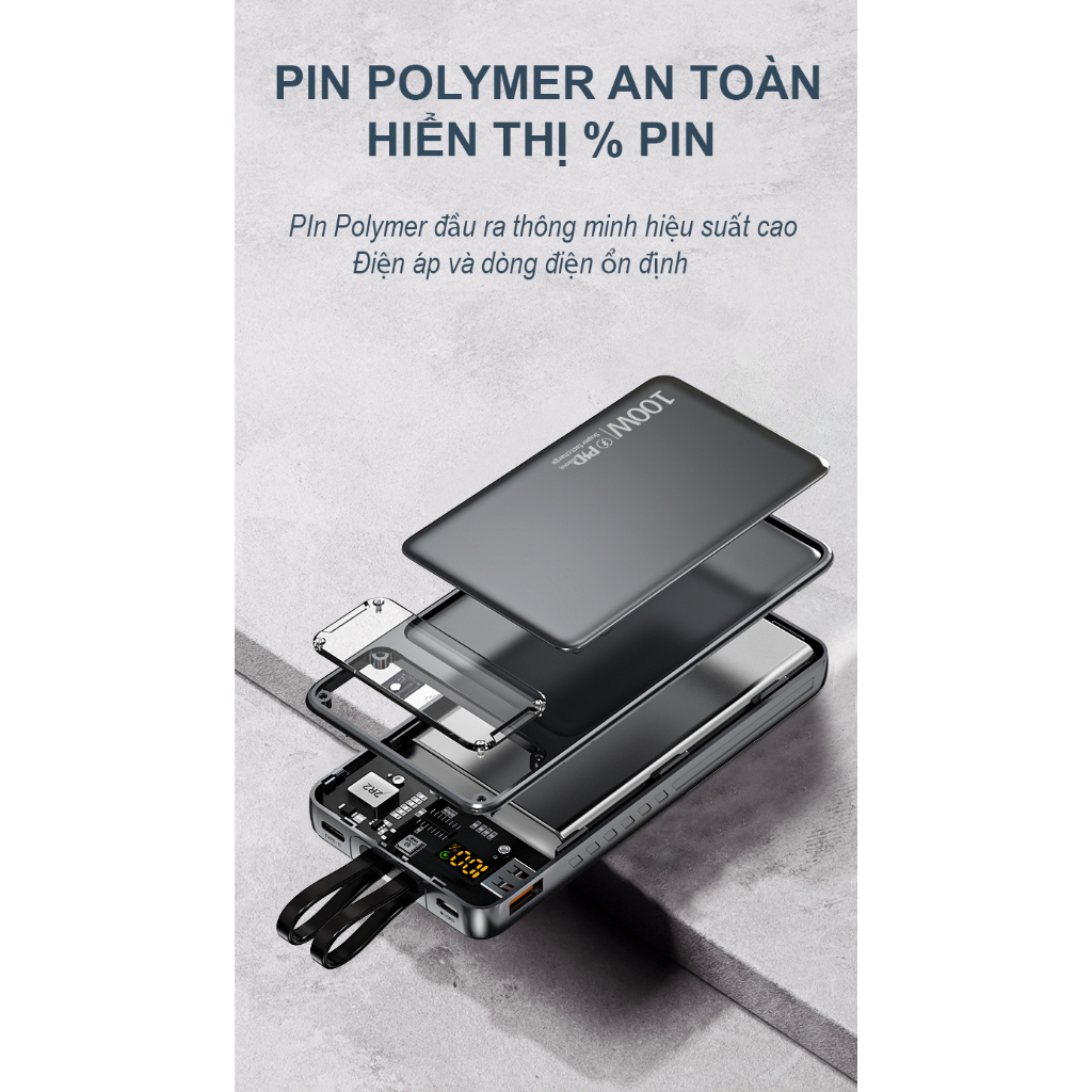 – Cục Sạc dự phòng sạc siêu nhanh: Với công suất sạc lên đến 100W và PD20W, sản phẩm có thể sạc nhanh đầy 50% ai phôn chỉ trong 30 phút, giúp tiết kiệm thời gian sạc.